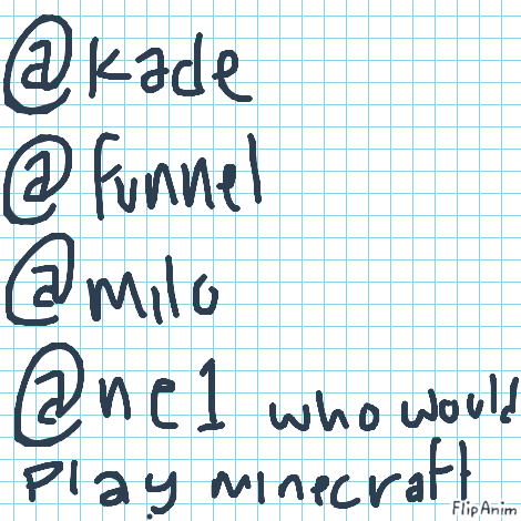 LinkMILO I MIGHT NOT SEE THE FF RIGHT AWAY BC IMMA BE PLAYING MINECRAFT