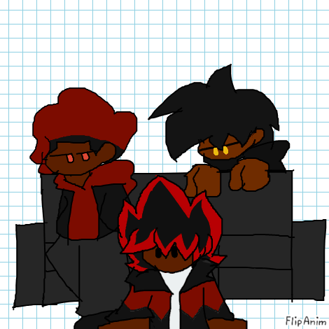 one with pink eyes 1st oc red and black jacket 2nd oc yellow eyes 3rd oc
