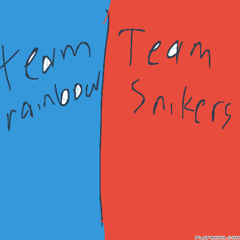 This is over with, I don’t want people to be like: “OMG, IM ON RAINBOW’S SIDE!” Or “OMG, IM ON SNICKER’S SIDE!”. This situation is over with and we worked it out already.