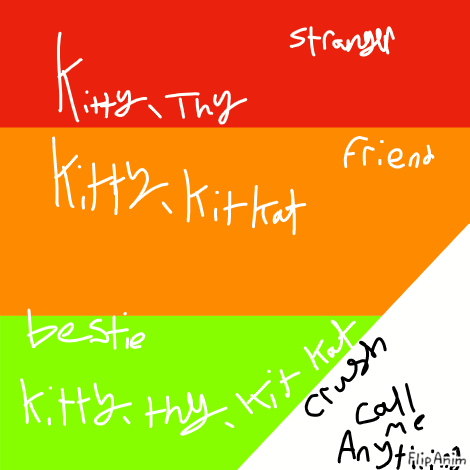 Stranger-Kitty,Thy Friend-Kitty,KitKat Bestie-Kitty,Thy,Kitkat Crush-You can literally call me anything