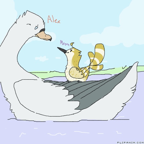 Very rarely will you see these two apart, even though it may seem that Alex wants absolutely nothing to do with her, he actually sees her like a little sister, and makes sure she stays out of trouble, Megan is extremely happy just about all the time and is always trying to cheer up Alex, main source of transportation for her is on Alex’s back..so...that’s something lol