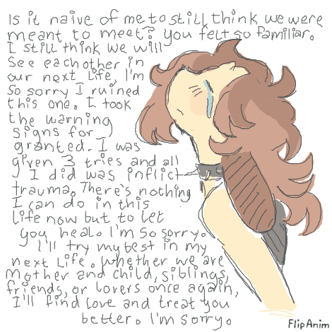 Linki don't want to be forgiven because i just dont deserve it. not in this life at least. this was a lesson for me and im sorry that this lesson meant that others had to be hurt by my own hand. i will leave you be in your own life. i just hope im better in the next.
