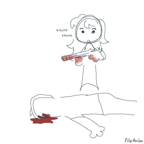 At first Nuka huffs two times after realizing she just killed her father then 4 bright flashes occur to represent several more gunshots