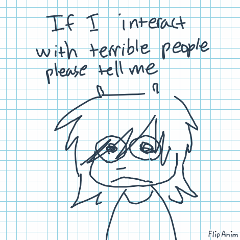 i try to be friendly and not rude immediately without reason but if i end up being nice with like. a racist or a pedo or smth tell me. i will block immediately