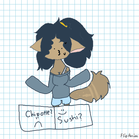 Linkooh I would defiantly pic chipotle I don't like sushi so do you want to be in my art work it's something for flipanim