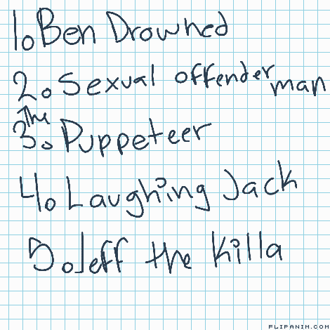 List of my top 5 Creepypasta's