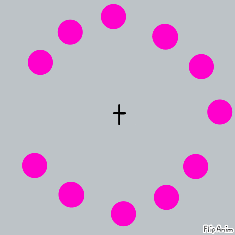 If you follow the dot it will remain pink but if you stare at the cross in the middle they will become green..Try it!!!