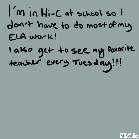hi-c is the highly capable program so basically i get to spend 6th block researching fun topics and doing easy work instead of doing ELA