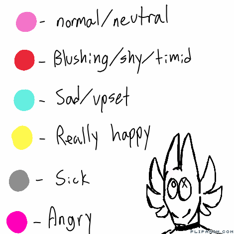 I don't know if there were actual planned colors but this is just what I came up with, I wanted the colors not to be as cliche as other emotion to color things, but it's still cliche. ;0