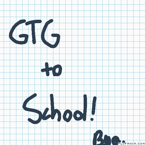 GTG to SCHOOL. Bye! ;^; T^T