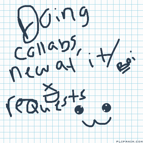 I’m new at this, so I kinda want to get a catch of what the popular thing is going around, with y’all doing collabs so, this will probably close soooon cause I’m going to be kinda busy, but yea I’ll do what I can {And heads up plz no long animation requests, I’ll do one in the future and I also need a image of what you want so I don’t screw up because I can’t read your mind, and that all }