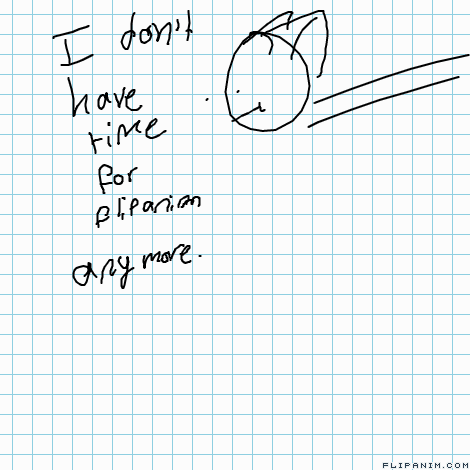 LinkI don’t have time for flipanim anymore, when I get home from school I only have 7 hours to myself including homework, and I get home at 2:45, and then I usually have to run errands with my mom and I have no time to draw or spend time for myself, I go to sleep at 10 pm every day and I take naps usually, so I can’t keep wasting time on art skills. I hate the way I draw anyway, so I might be taking a break for a while, or I may draw a few shitposts like usual, or maybe a project every what 3 months? I don’t have time for it anymore.