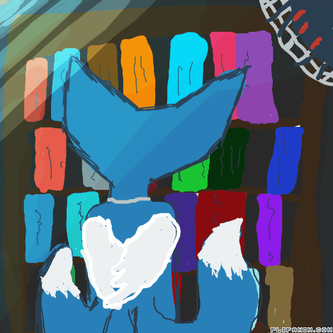 Blue in an old library
