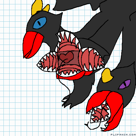 three heads. three tails...and wings.. uwu I LOVE THIS OC AAA
