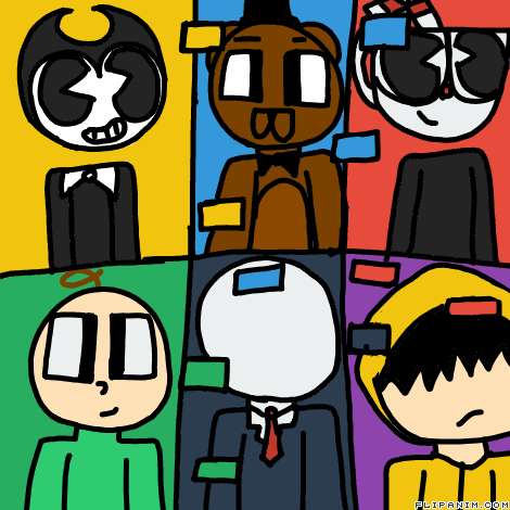 Bendy, Freddy, Cuphead, Baldi, Slenderman, Six