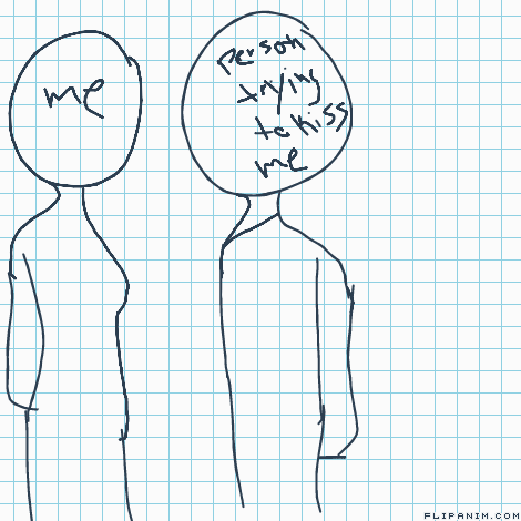 If you can't read it, it says: person trying to kiss me