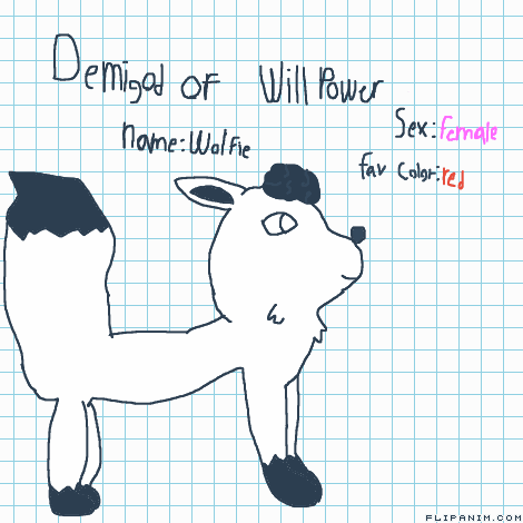 Linkthis is my oc wolfie who is a demigod of will Power she can give will Power to anyone who touches wolfies fur fav color is red and wolfie is a female