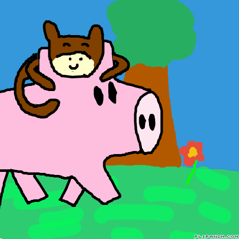 Baby monkey ridin' on a pig
