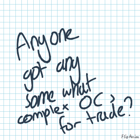 here I dunno if any of the ocs I got are complicated enough for you, i wint trade Cadence or imni for sure