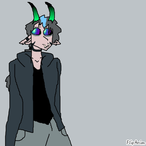 LinkOkay so yeah, I left out some things you said because I have learned from the last monstrosity that you had me make and not go with all of your ideas if the idea sucks. I also added some things and I did keep it mostly to what you wanted like I gave him a jacket still, just a different one and I went with green gradient horns rather than just dark green with black tips.