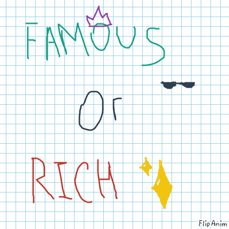rich then i could get into college then get a career as a new reporter or a writer or an entertainment job then ill be famous and rich