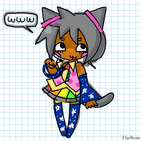 her hair is like miku, and also those warrior cats drawings. She's very obviously nyan cat, but her tie is a taco and her sleeves and tights are galaxy themed. Her face is epic face