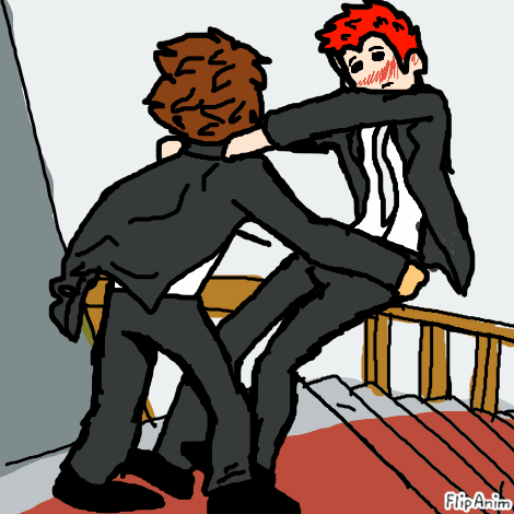 Caption:he was about to fall down stairs for some reason and so he caught him