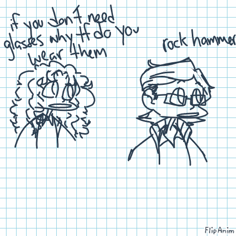 Linkheadcanon (i say as if theyre not my ocs) that he broke his goofy fake glasses in undergrad after hitting an outcrop with a rock hammer and now he feels 100% justified in wearing them everywhere even if theyre impractical. but he tells esther its because theyre effay