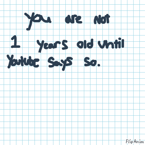 LinkYou are not officially one years old unless YouTube says you’re one years old because your first video comes out.