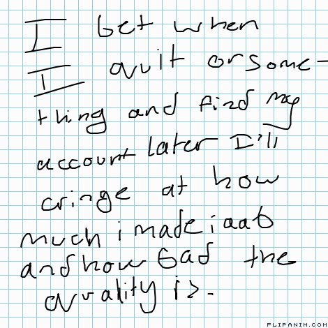 i dont understand my own handwriting "I bet when I quit or something and find my account later I'll cringe at how much i made iaab and how bad the quality is"