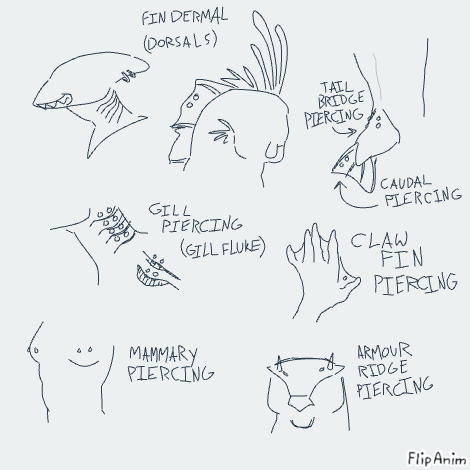 some piercings are limited to specific species. like thr armour ridge piercing, which can only be given to aquatics with an armoured brow