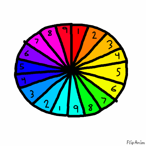 I put 9 colors on different pages and did this trick to see what color I'd get after switching to the white page afterwards. Then I filled in the page with the color I saw and moved onto the next color. I did this until I got the true opposite of each 9 colors and then made a few color wheels with them.