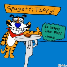 tony tiger advertising spaghetti flavored taffy
