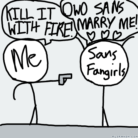 sans himself is cool the fangirls? lets just say THROW THEM OFF THE BRIDGE IN HOTLAND