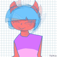 There was a red skinned demon with short blue hair and green eyes, sharp teeth, she also had a hottish pink necklace, she looked crazy, insane.