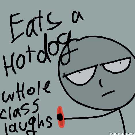 I ate a hotdog during lunch and the whole class started laughing