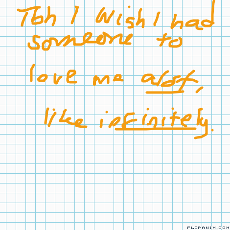 LinkMy handwriting is probably a bit weird because I sunburnt my entire arm and it’s really sore. But I wish someone could love me a lot, like really infinitely, no boundaries or anything. For example, I want someone to love me like my mother loves me, or like pablo loves Trin, like a married couple loves each other, etc etc...