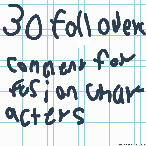 i finally got 30 followers and every time i get 10 followers i do a fusion character of one of your choice so start commenting.