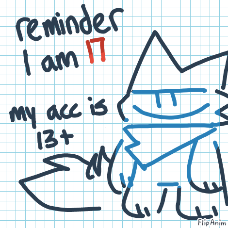 Linki normally wouldnt care if kids under 13 followed me because they really never interact with me ever and only tell me my art is cool. but hey. because im 17, i think its necessary to point this out ',:|