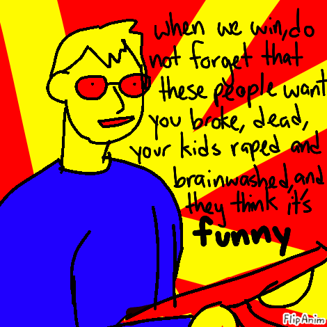 Linkand the funny sam hyde quote is true. they wont stop until youre dead. they want you to kneel, and if you refuse they want you to die. they hate you. all of their personal failings are now your fault. theyll destroy the fabric of the internet to keep people from talking about how they rape women and groom young girls. you think this is the good side? you really think these are the people to rally around?