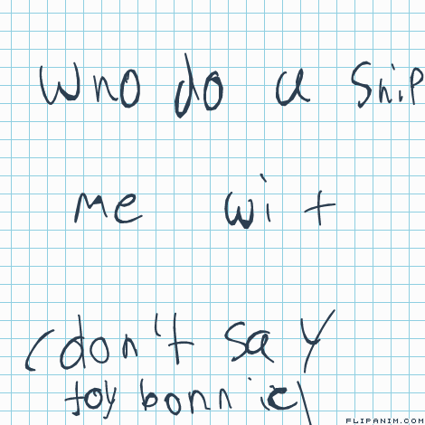 i mean, you're name's FOXYlover but you like toy bonnie (why you don't like the original, less horrifyingly.. plastic.. bonnie is beyond me, same could be said about your name).....is this the world's most elaborate way of saying you ship bonnie x foxy.....? if so, i accept :3......... (idk who i ship you with actually....) wanna do the crush rp at some point, i finished that other character, but i should have made the tail differently...