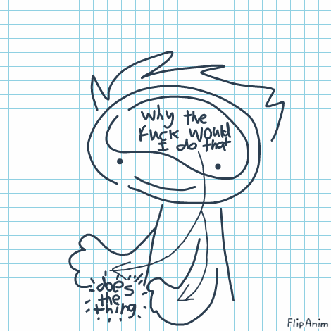 LinkKeep in mind I think "huh it'd be so weird of I did [thing] why would I do that" consciously before not even realising I've gone and done the thing