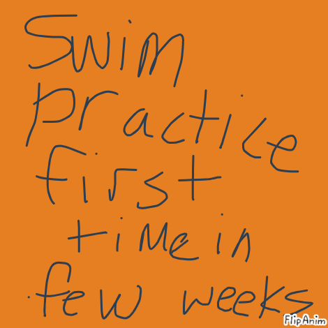 LinkOkay, I'm back. It wasn't that bad cause we where just doing a little freestyle, kick with kickboards, and flip turns, and diving!
