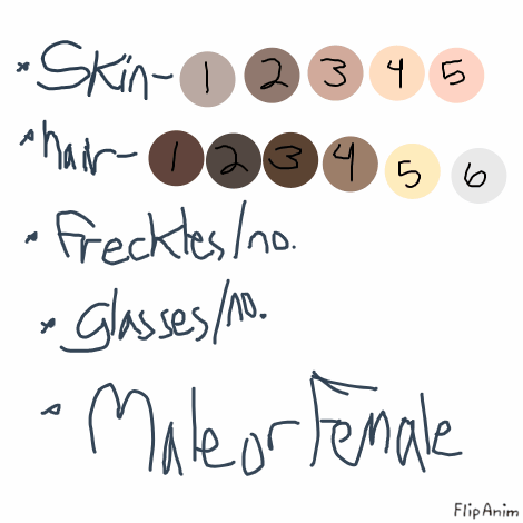 Skin: 2 Hair: 5 No Glasses Male