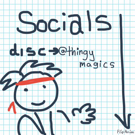 Linkmy socials are @thingymagics on pretty much everywhere— except my personal insta, which is @zenixyr. those are really your best bets! im on disc ALOT its my primary social media. if you guys want to talk im there ❤️