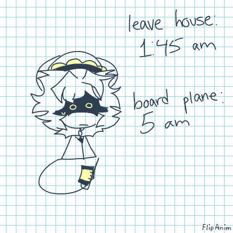LinkI have to stay up till almost 2 in the frickin morning (which wouldn't be so bad if I was just chilling in my room like usual) and get on a plane at 5!!! What the motherflipper rn.... That means I have to start getting ready at like 4 in the morning
