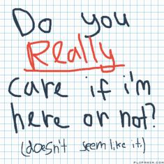 I HATED IT. so I want to start over. (For the 7th time.) I want to be happy again. I have new friends now. I have a girlfriend. They actually CARE FOR ME. And MISS ME when I'm not around!!! And during that ENTIRE WEEK I was home alone from school, sick and in pain, NOBODY DARED ASK. "HeY wHeReS aRi???, except for hillary!!! And you all shoved it off. And during school, when I shouted I was gonna stab myself. You all were there. NOBODY HEARD ME. NOBODY CARED TO SAY NO. except for Abby! And she was half asleep!!! So I don't give 2 shits, 3 ****s, and 4 damns if you care about me! But I still care about you! So if Theresa a way to keep in touch, I'm all ears.