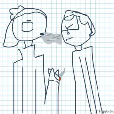 *Uses mouth to sign it*
